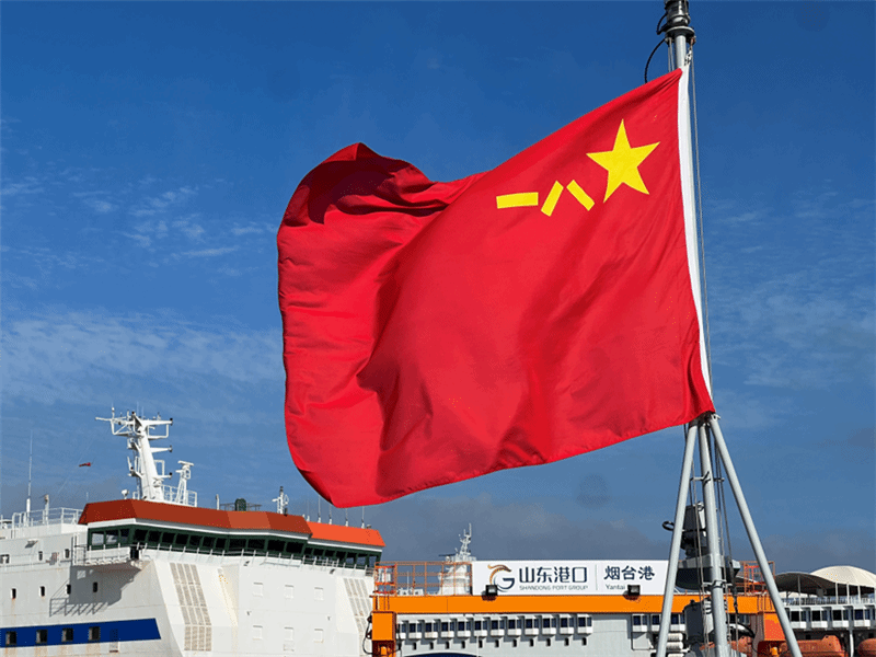 军旗在港口迎风飘扬