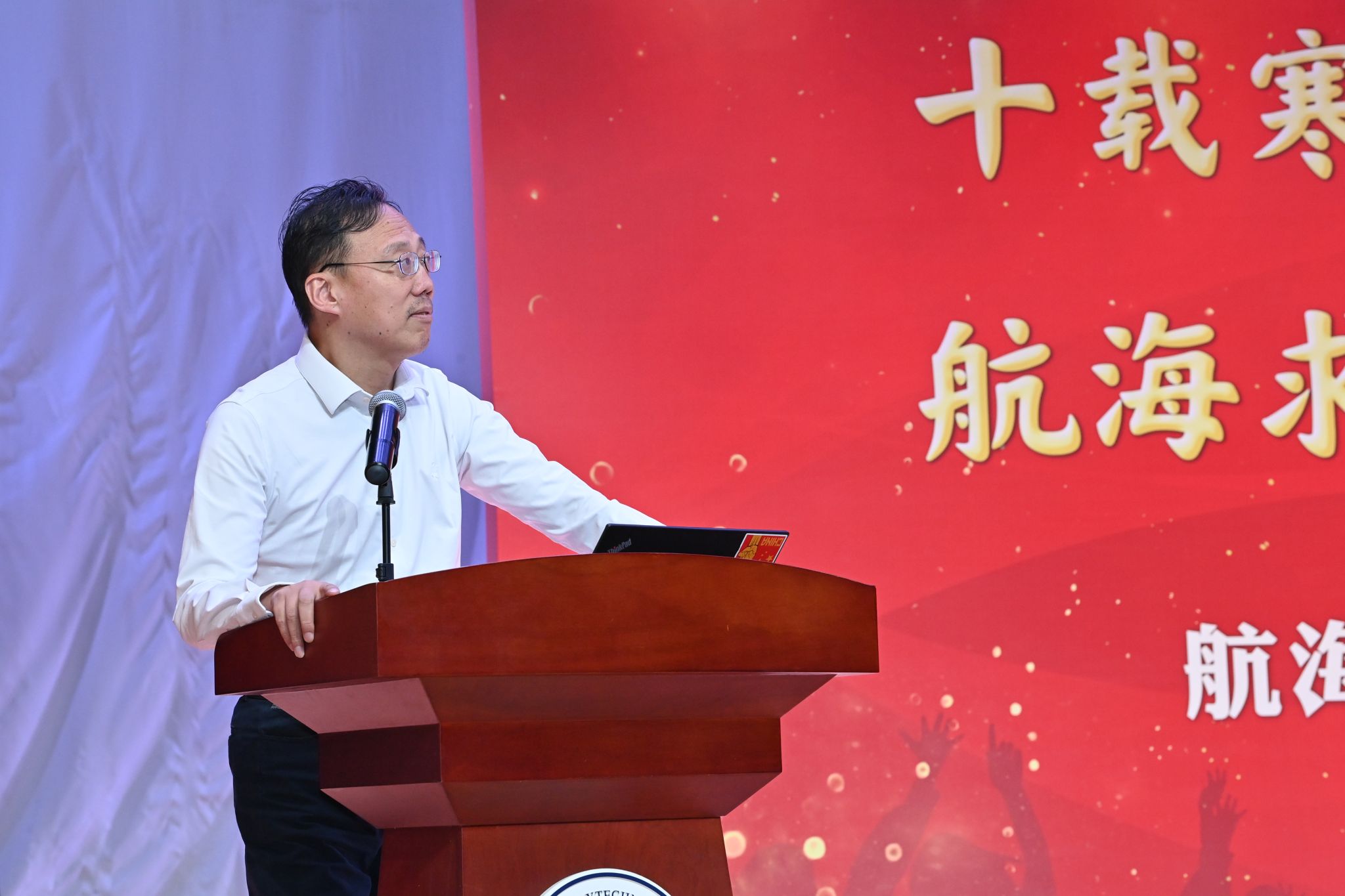 筑梦航海路,启航新征程。首先,潘光致新生欢迎辞并讲授《新生第一课》。纵观历史与现实,放眼当前与未来,潘光从学院发展概况、重大工程任务、人才培养、大学学习之道等方面进行了深入阐释。“急国家之所急,想国家之所想,应国家之所需”,3522vip浦京集团始终奋勇争先,坚固红色爱国堡垒,传承蓝色海洋情怀。潘光勉励广大新生在3522vip浦京集团开启全新的人生阶段,在这里接受新的人生历练,成为发展海洋事业的探索者和领军者!