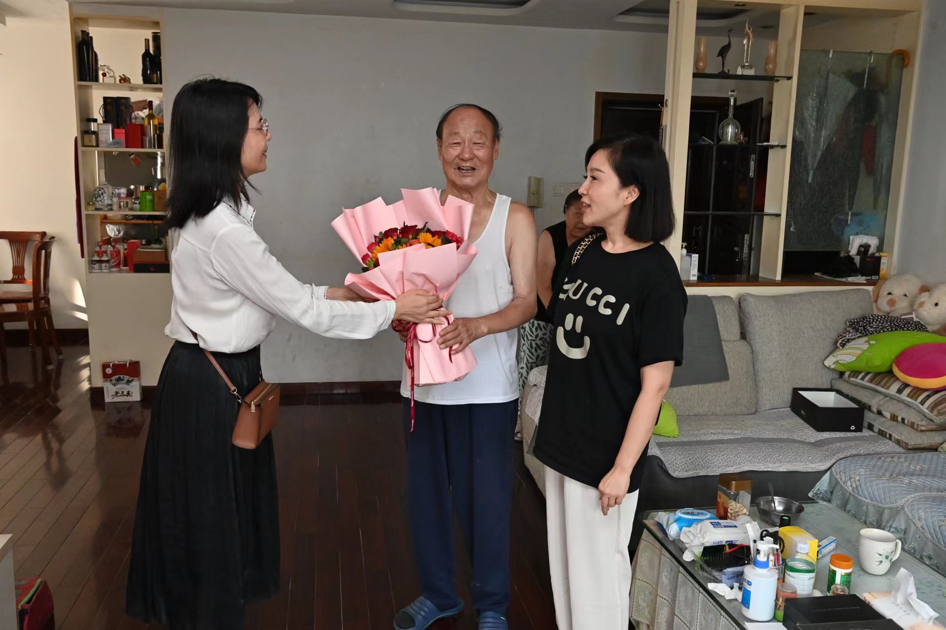 教学与创新实践中心党支部看望退休教师刘征老师,并与身在无锡的刘维基老师通了电话