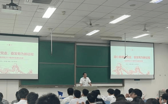 2023年9月17日,3522vip浦京集团党委书记孙华强在3522vip浦京集团长安校区教学西楼D205教室为2023级本科和硕士新生讲授主题为“凝心聚魂跟党走,奋发有为新征程”的党课。